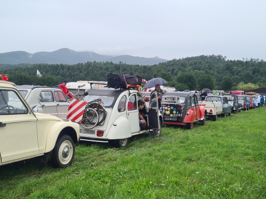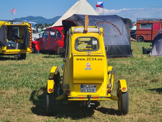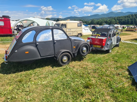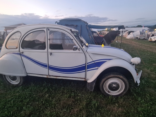 Enfin bref: Irgendwann haben auch wir es geschafft. Und amüsierten uns grossmehrheitlich bestens am 25. Internationalen Döschwo-Treffen im slowenischen Postojna. Tolle Stimmung, fröhliche Menschen, unbändige Freude, laute Musik, noch lautere Zeltnachbarn, deren Alltag dann begann, wenn sich unserer zu Ende neigte. Grossmehrheitlich deshalb, weil: An ein Döschwo-Treffen fährt man mit dem Döschwo. In unserem Fall mit Sokrates 2b, der mittlerweile auch schon 45 Jahre in der Karosserie hat. Wir geben es ja gerne zu: Mit Columbus wäre das hundertmal bequemer, luxuriöser und einfacher gewesen: Da hätten wir kein Zelt aufgestellt, keine Luftmatratze gepumpt (zum Glück beides zuhause vorher nochmals geübt und getestet) und nicht im Schafsack genächtigt. Und vor allem: Wir hätten uns des Morgens nicht fragen müssen, wie wir nun möglichst einfach und unter Bewahrung der Contenance aus diesem Zelt heraus und auf die Beine kommen. Eine Frage der Ehre eben.