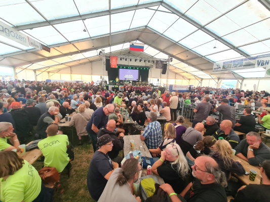 In Postojna reihen sie sich dann schön brav ein, einer hinter dem anderen und verstopfen – als wäre es das natürlichste der Welt – unaufgeregt sämtliche Zufahrtsstrassen zum Camp. Die Polizei tut ihr Möglichstes, den „normalen“ Verkehr neben diesen eigentümlichen Fahrzeugen durchzuschleusen und geht dabei nicht zimperlich vor.